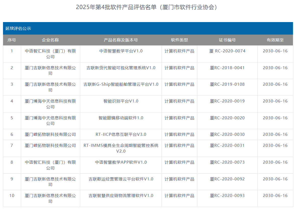 根据中国软件行业协会中国软协[2022]6号文授权,我协会于今年2月开展厦门地区2025年软件产品评估、变更、延续工作。